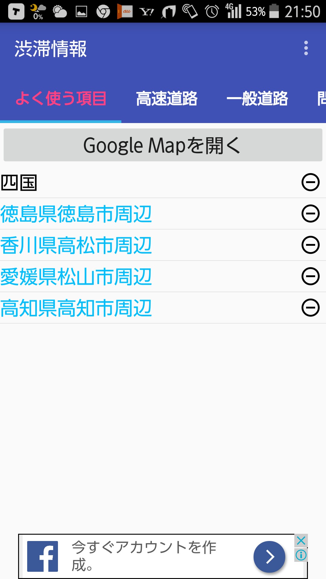 いくら全国の道路交通情報を閲覧できても、実際に運転するエリアは限られている方は多いと思います。著者は四国在住ですが、例えば四国でしか運転しない人には関東の道路交通情報はさほど必要なく、むしろ四国の道路交通情報を素早く閲覧できた方が便利だと思います。