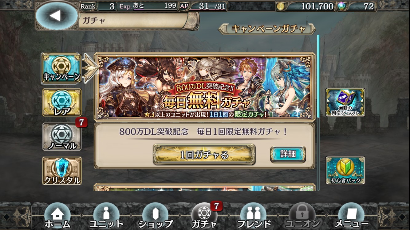 ・初めて引けるガチャで最高ランクのレア度登場!?