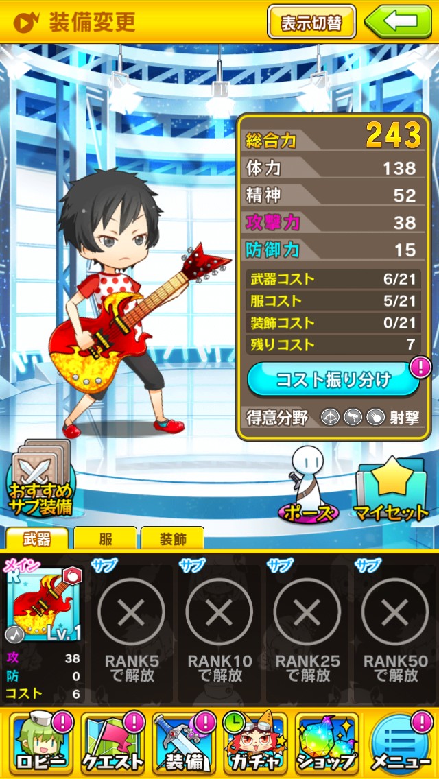 装備の画面では、装備の変更のほか、装備の強化や、服装をおしゃれなものに変更することも可能です。機能性を重視するのも、見た目を重視するのも、自分次第で変幻自在です。