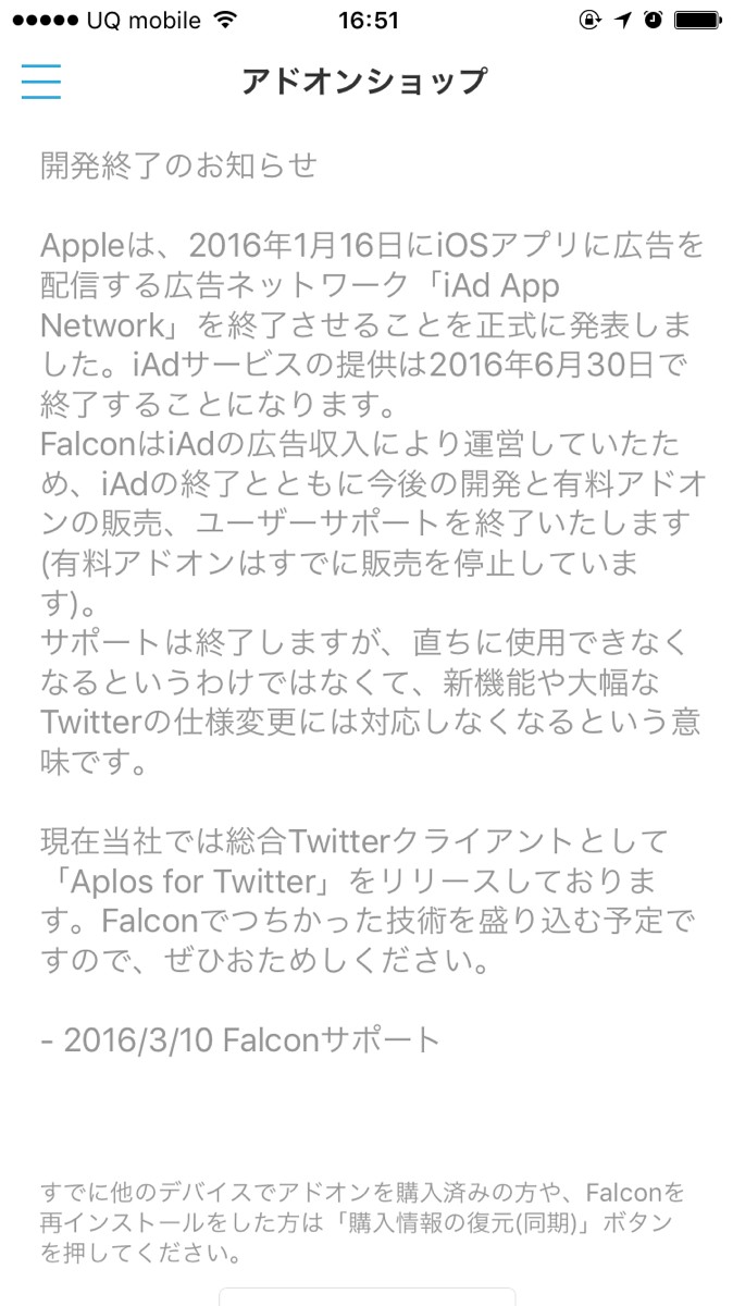 2017年3月を以てアプリのサポートが終了しているのですが、問題なく利用できました。サポート終了と共に無料アプリとなり、広告表示が削除されたようです。