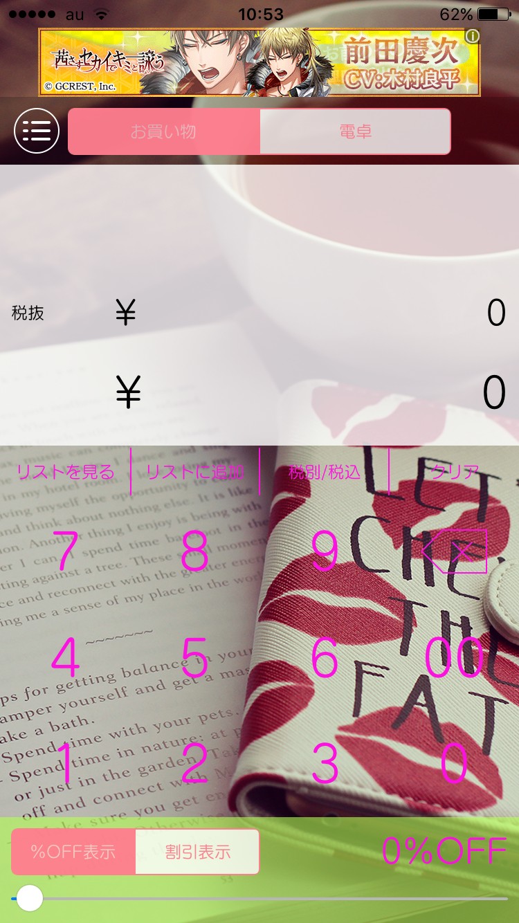 世の中に電卓機能のアプリは沢山ありますが、デザインなどがシンプルなものが多く、違いもあまりありません。しかしこの「かわいい電卓!割引、税込み計算、買い物に便利なお洒落無料電卓~Calc wear(カルクウェアー)~」はかわいいとおしゃれをコンセプトにしていて、電卓の背景画像をかわいい素材から選んで変更することが出来るのです。そしてかわいいだけではなく税込み、税抜きの表記や割引計算などの様々な計算機能も充実した無料アプリなんです。