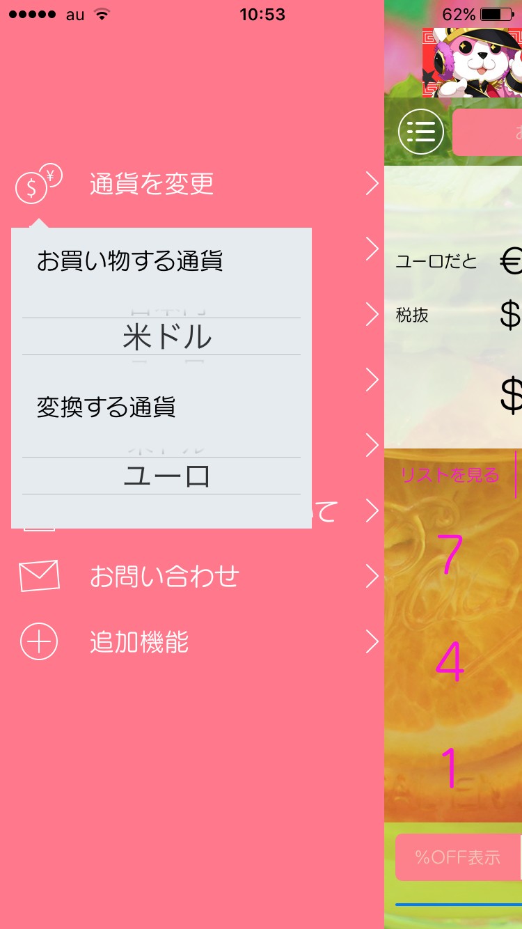 この「かわいい電卓!割引、税込み計算、買い物に便利なお洒落無料電卓~Calc wear(カルクウェアー)~」は海外でのお買い物計算にも役立ちます。「お買い物」モードで計算するときは通貨換算機能付きで円、米ドル、ユーロの3通貨が選択可能です。簡単に通貨換算が出来ます。これで海外でのお買い物も悩まずスムーズに。
