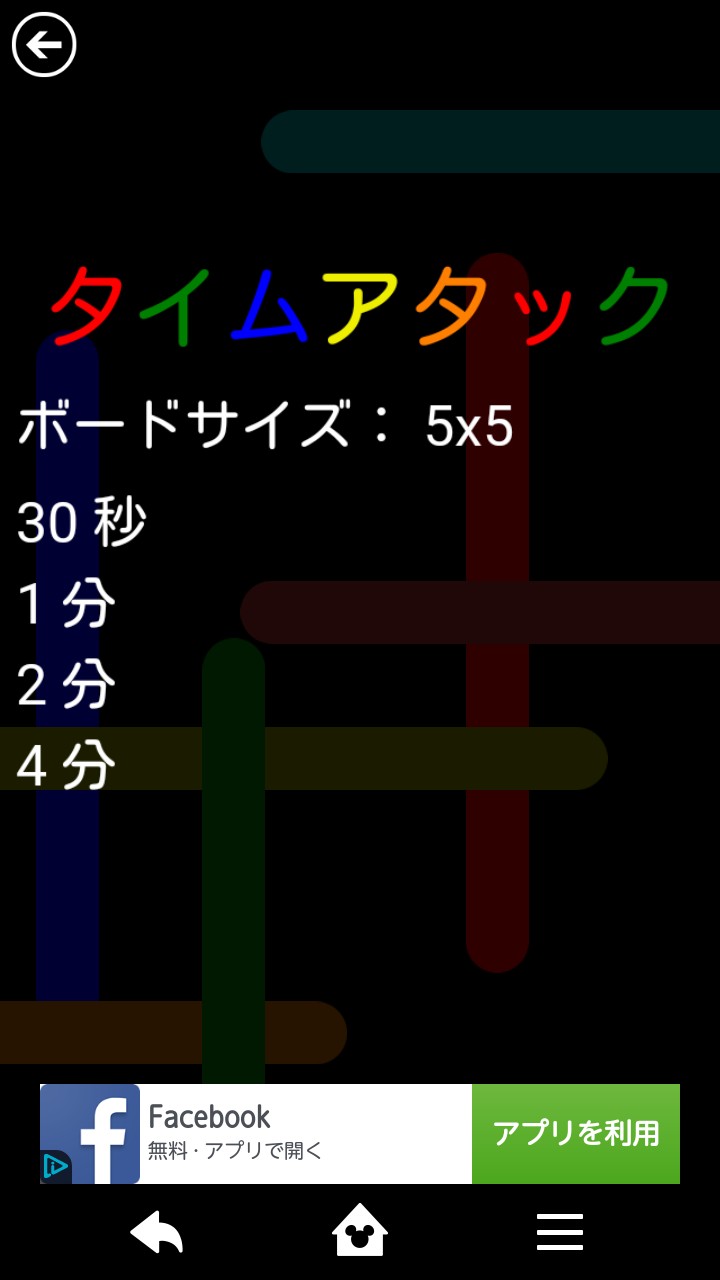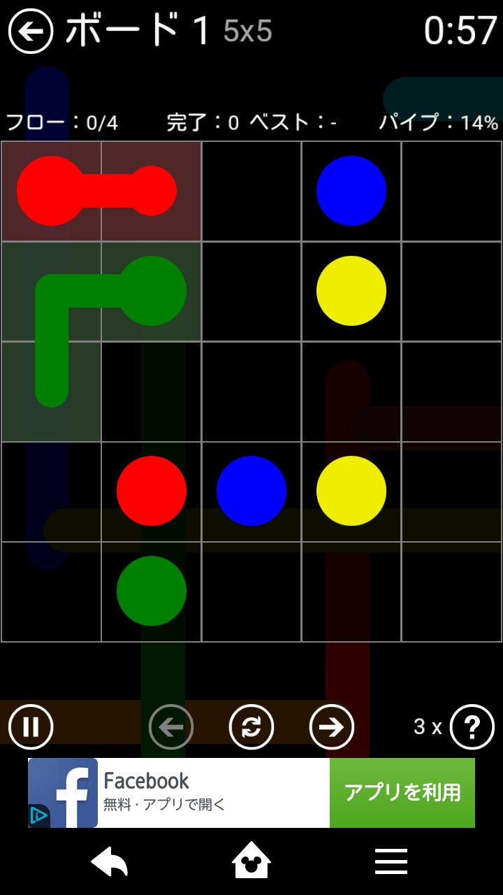 もともと存在している同じ色の点同志を線でつないでいくのですが、この時に他の色の点や線とぶつかってはいけません。他の色の線を避けて同じ色の点と点をつないでいくのです。