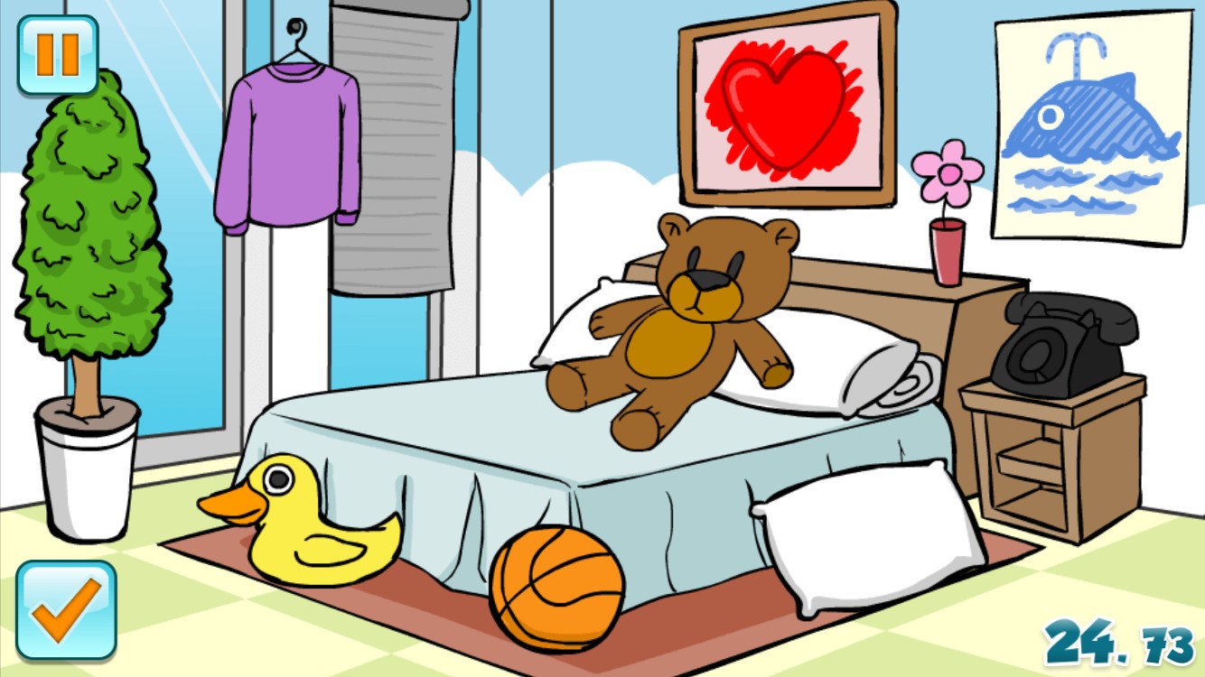 「Fun English: 子供用英語言語学習ゲーム」には、神経衰弱で遊びながら色の英語を学ぶことができます。カードをタッチするとめくれ、そこに書かれている色と同じカードをもう一つ見つけめくります。この時に、カードに書かれている色の英語の音声が流れ、耳で聞きながら英語力を身につけることができます。他にも、色と物を想像しながら学べるゲームも。これは、初めは何の色も塗られていない白い部屋があり、アプリから「ブルー」と聞こえたら部屋の中にある青いものを探し、タッチします。正解だとタッチしたものが青く色づきます。同じ要領で他の色と物をリンクさせ部屋中の物の色をつけていきましょう。