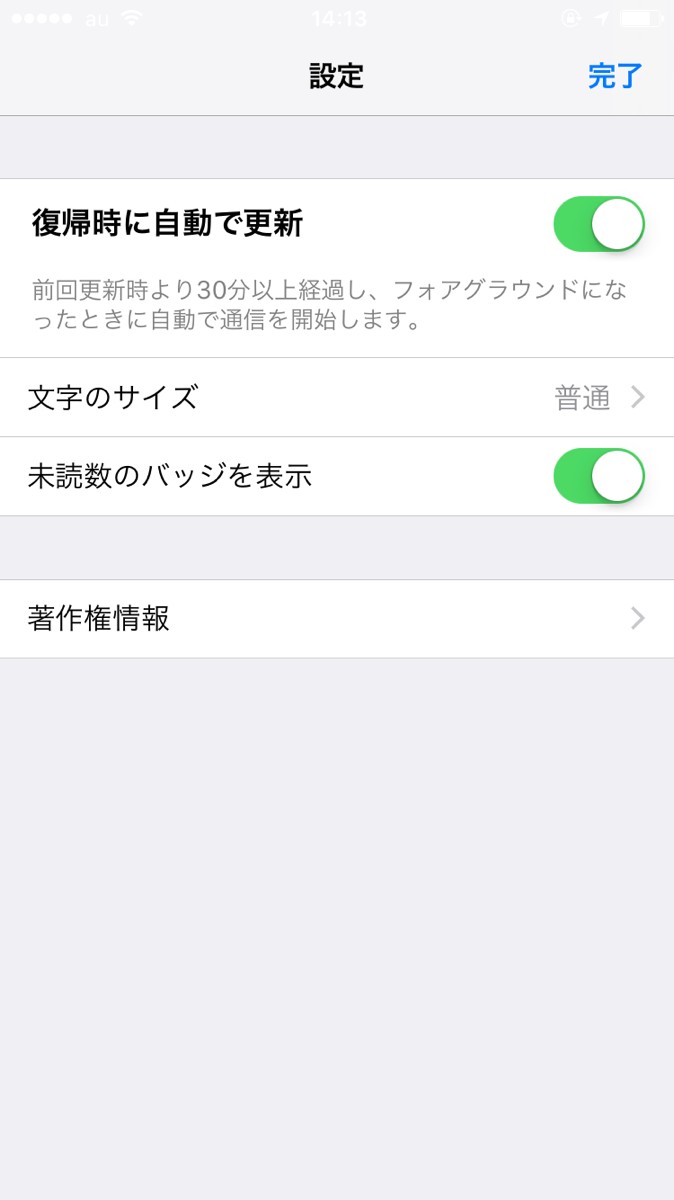 文字のサイズを調整できます。また、前回の更新から30分以上経った場合に自動で更新するよう設定したり、逆に設定を解除したりすることができます。