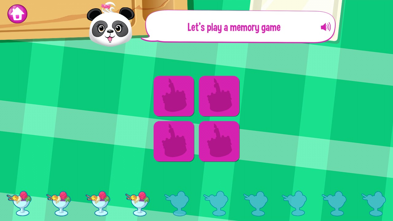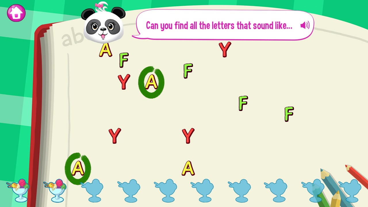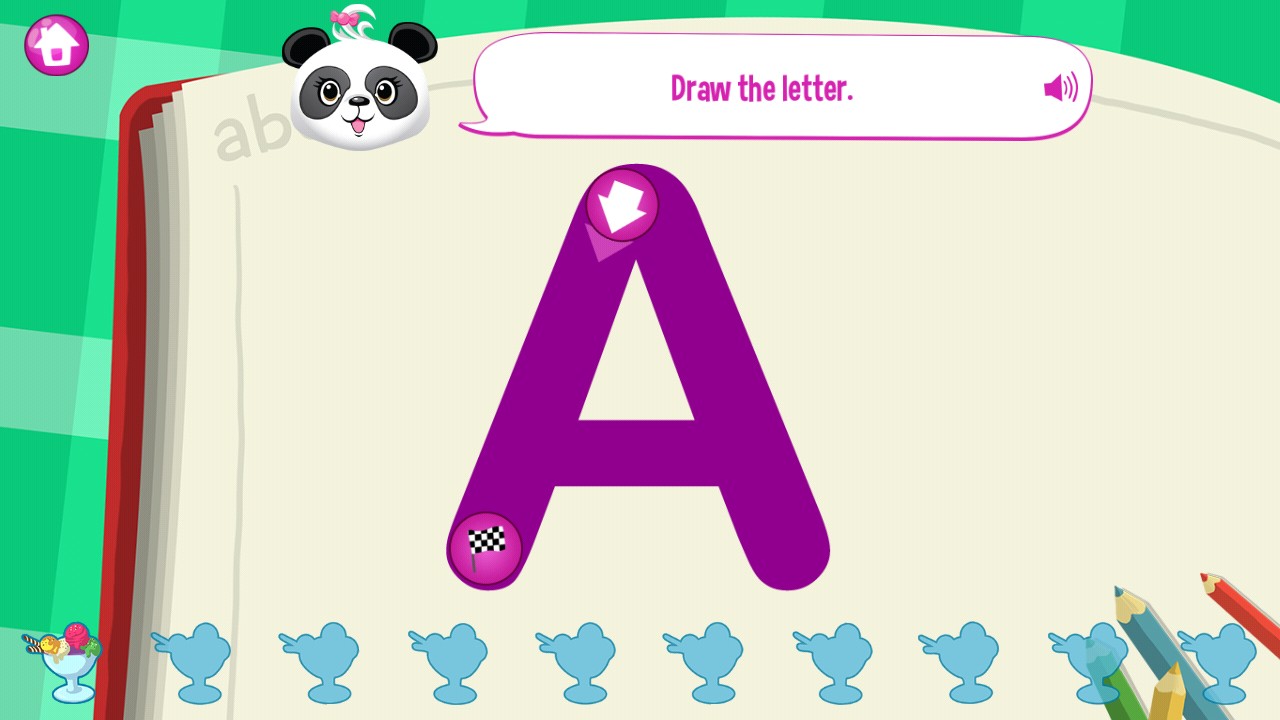パンダのローラの指示に従って一緒にゲームを進めていくうちに、自然とアルファベットやネイティブの発音が身につく!