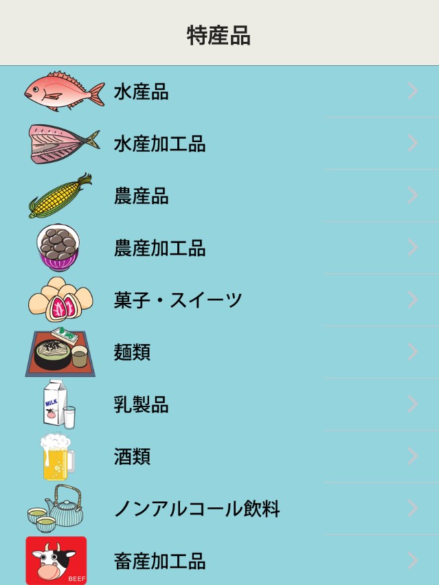 アプリには「特産品」というコーナーがあり、こちらより福岡の特産品を楽しめるスポットを検索することができます。