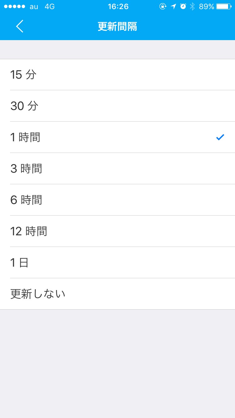 “15、30分、1、3、6、12時間、1日、更新しない“と自由にカスタマイズできます。