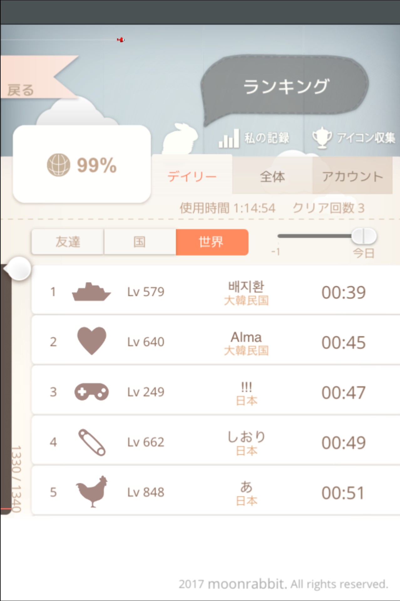 毎日1問配信される「デイリー」問題では、世界中の人と問題のクリア時間を競うこともできます。ワールドランキングで、自分の実力をぜひチェックしてはいかがでしょう?