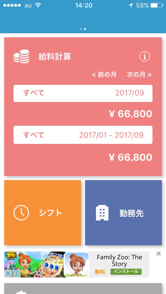 カレンダー画面上で、左方向にスワイプすると、給与を確認できます。