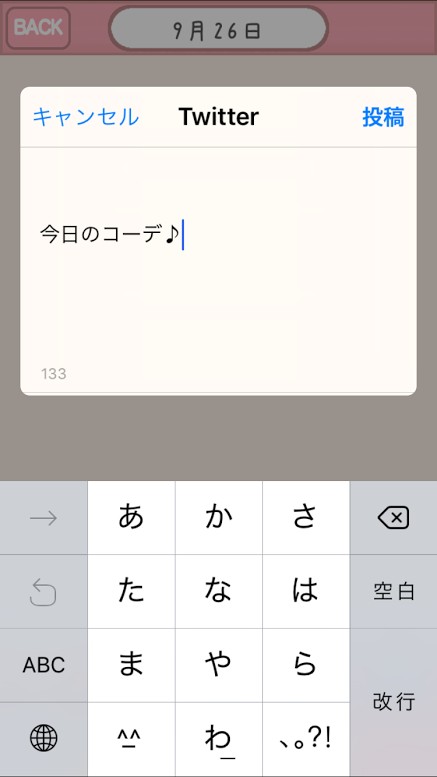 今日のコーデの記録ができたらSNSで投稿して友達に自慢しちゃいましょう。投稿できるSNSは、facebookとツイッターです。SNS投稿も簡単で、投稿したい日にちのコーデをタップし、画面下部にあるfacebookかツイッターのどちらか投稿したい方をタップし投稿します。SNSに投稿するとに、「今日のコーデ」というようにコメントを書き込むことができます。投稿するコーデの詳細を書き込んで投稿してみると良いですね。また、写真はコーデだけでなく、今日のネイルやマツエク、エステなどの写真を撮っておけばカレンダーに追加することができます。ファッションだけでなく美容関連のことも記録することができますよ。
