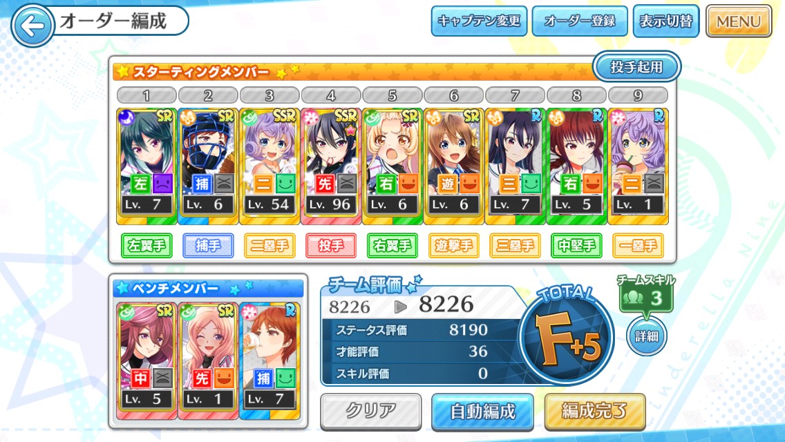 選手を育成して、チームメンバーとして編成することで、監督のオーダー力を示す「チーム評価」が上昇します。