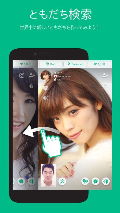 190以上の国と地域で提供されているアプリです。世界でのダウンロード数が、1億以上あり、多くの人が利用しているので、世界中に友だちを作りましょう。また、静止画でなく、ビデオチャットなので、リアルタイムで会話を楽しめます。