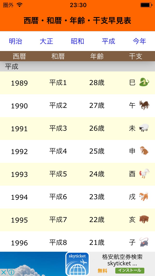 「西暦・和暦・年齢・干支早見表」今年は何年?干支は?が一発でわかるアプリ