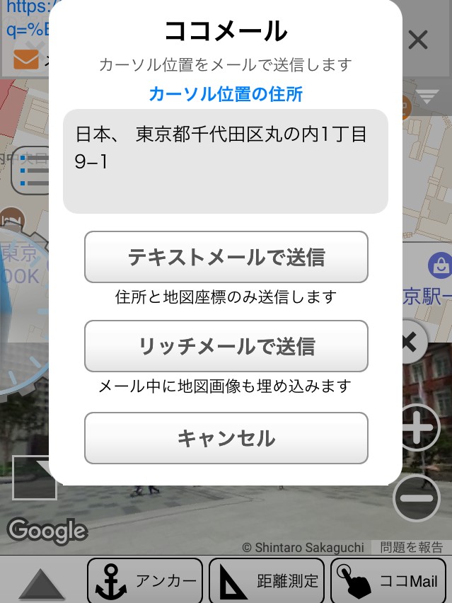 そんな時に便利なのが「マイマップ+」のココメール機能です。