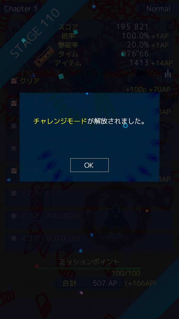 また、上級者の方には「チャレンジモード」が搭載されており、機体をかなり強くしないと中々クリアできない仕様になっています。