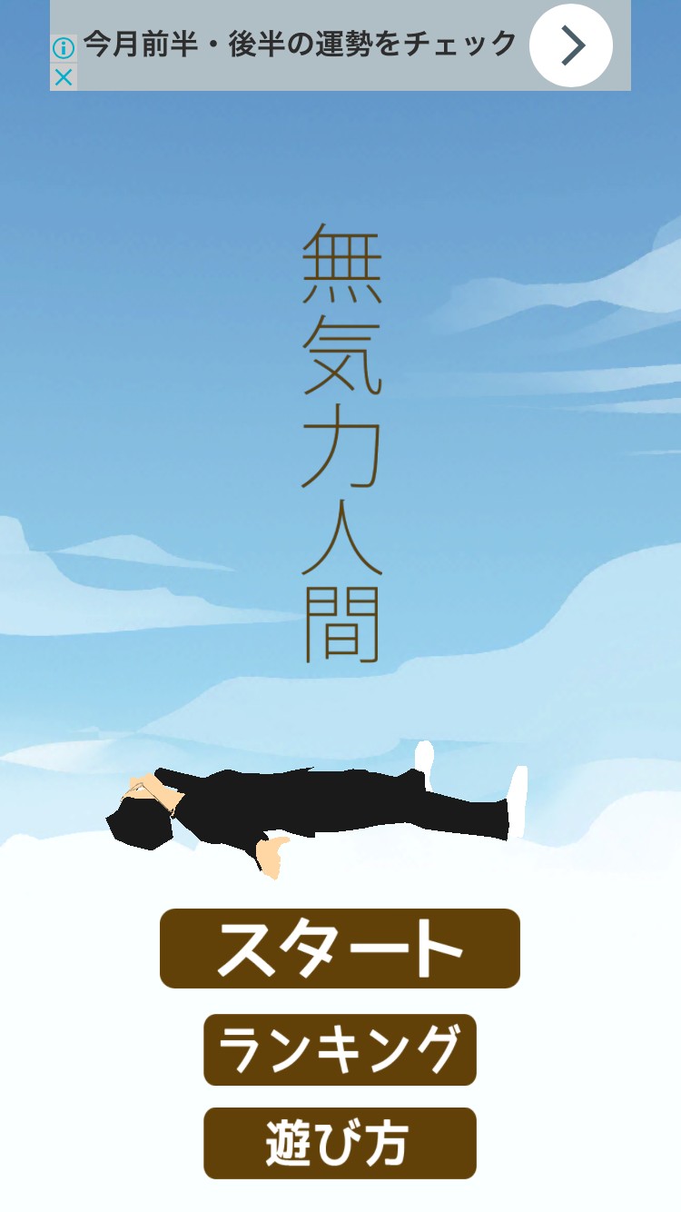 「無気力人間」というこのゲームは、無気力に床にだらけている彼を持ち上げて助けることがミッションです。