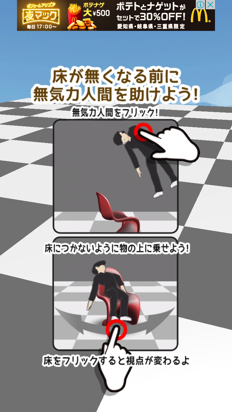「無気力人間」無気力で動けない彼を落ちる床から救い出せ!!