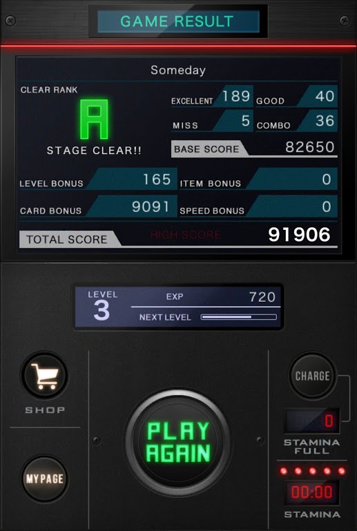 プレイに慣れていない初心者さん向けの「EASY」モード、通常レベルの「NORMAL」モード、上級者向けの「HARD」モードと、難易度が3段階から選べます。音ゲーが初めてでついていけない!という人は、まず「EASY」モードからトライしてみてくださいね。