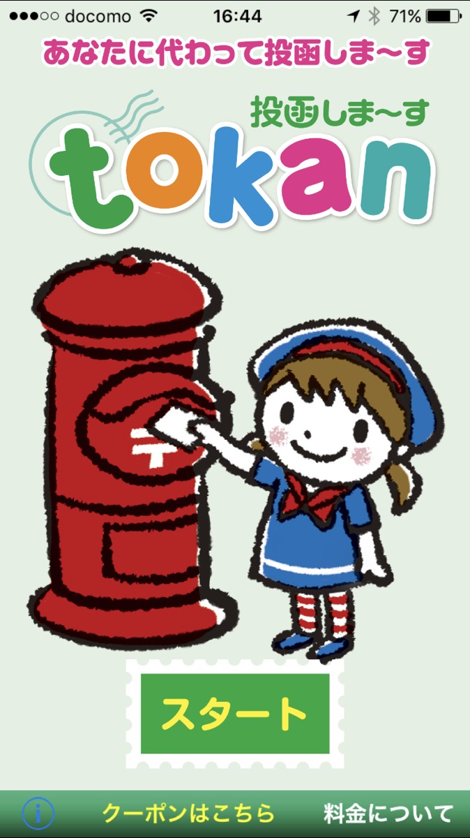 「投函しま~す」アプリをストアからダウンロードしてアイコンをタップ!