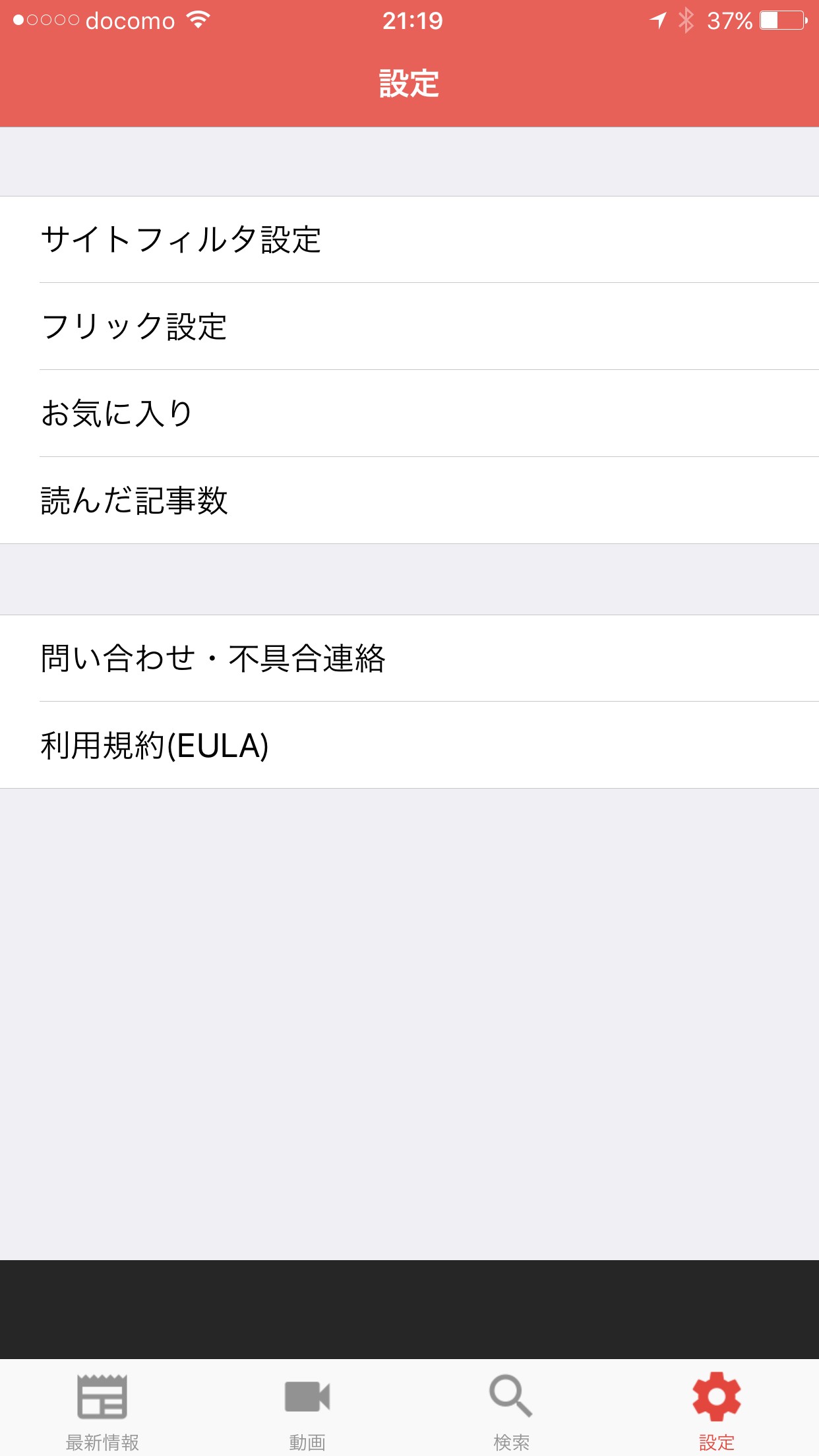 フリック設定では、記事画面での右フリック操作を無効にすることも可能です。また、フリックの感応度を「普通」「強め」「かなり強め」の3段階で変更することもできます。