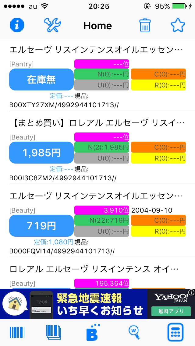 バーコードスキャンが終わるとすぐに商品情報が表示されます。定価やランク、カテゴリなどの基本情報を見ることが可能です。