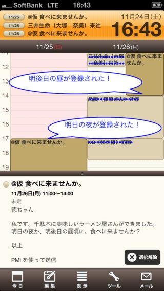 ・「カレンダーへ登録」をタップすると、メッセージをイベントとしてカレンダーに登録してくれます