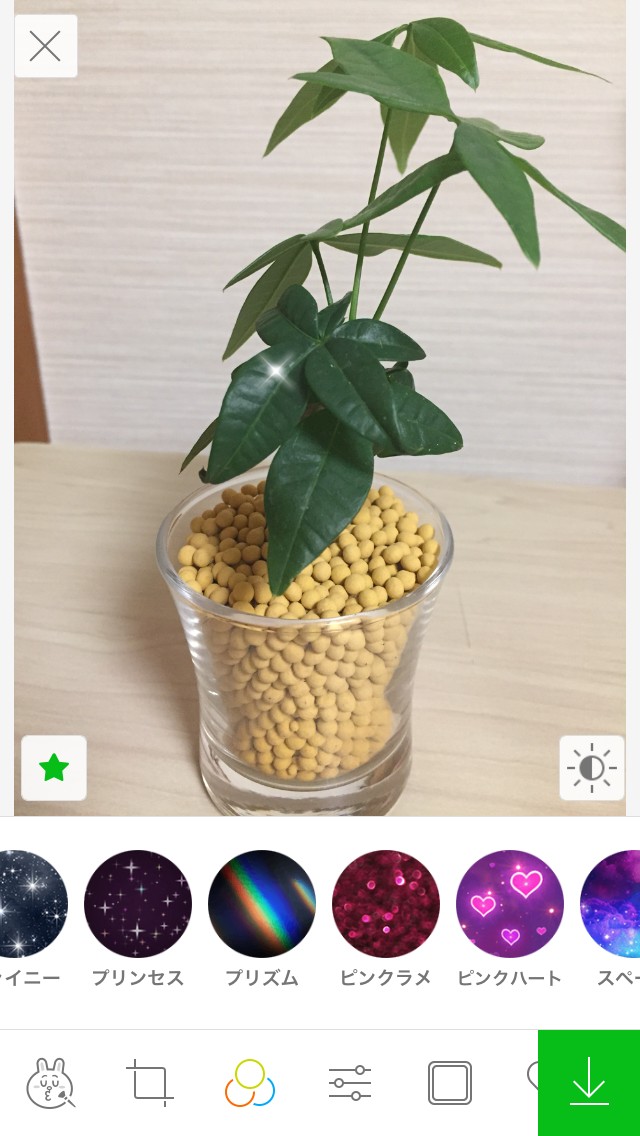 肌の明るさを変えたり、目を大きくみせたり、「スキンケア」機能を使ってニキビやクマの跡を消したりできます。「シャイニー」「プリンセス」「パウダー」「ラメ」「ピンクハート」「ラブリー」など、さまざま演出ができるフィルターがたくさんあります。簡単に一瞬で雰囲気を変えることができ、おしゃれに加工できます。