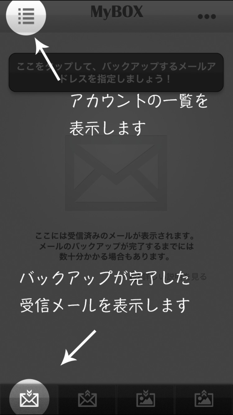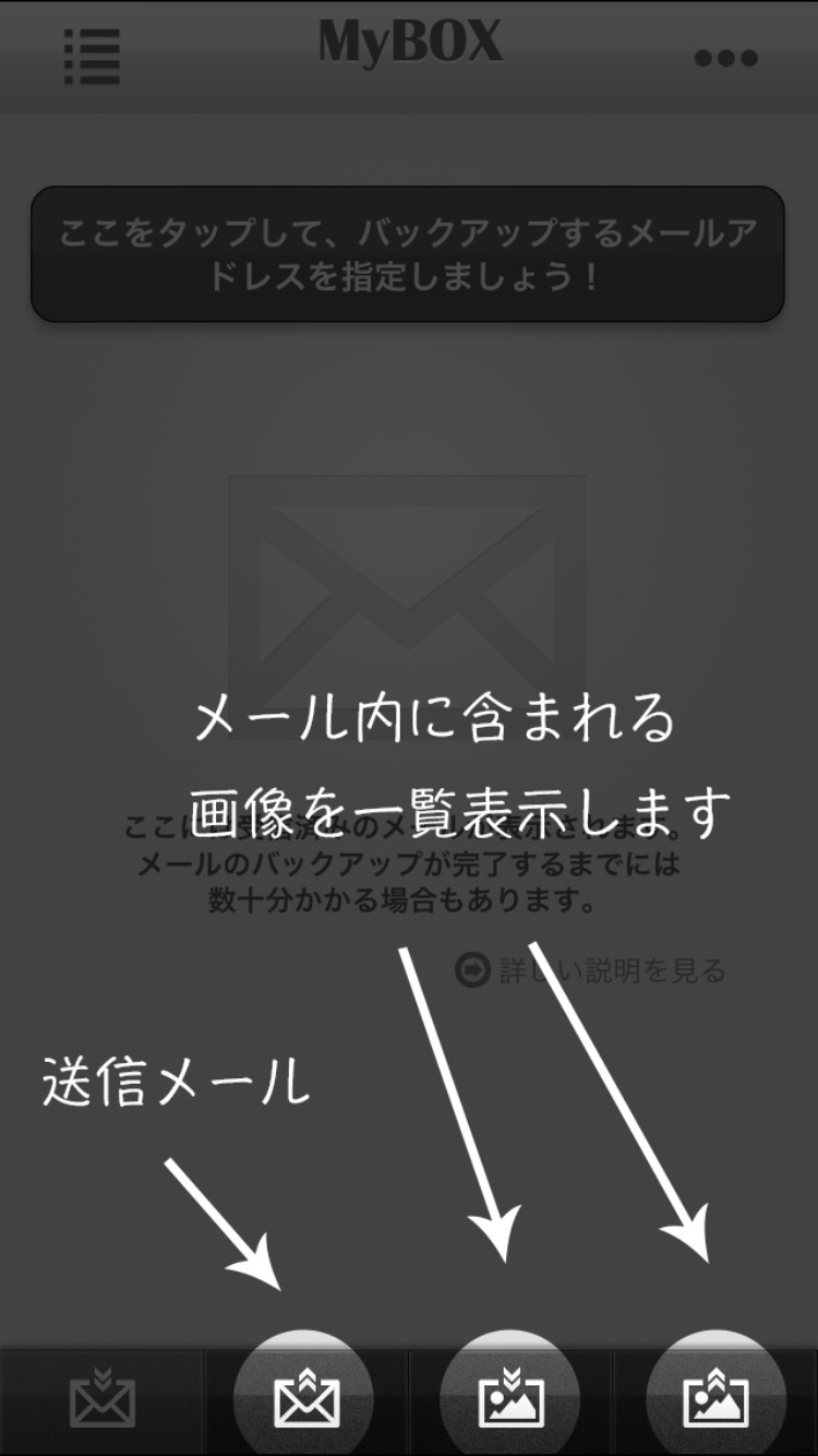 「MyBOX - メールと画像をずっと保存」を実際に利用してみましょう。