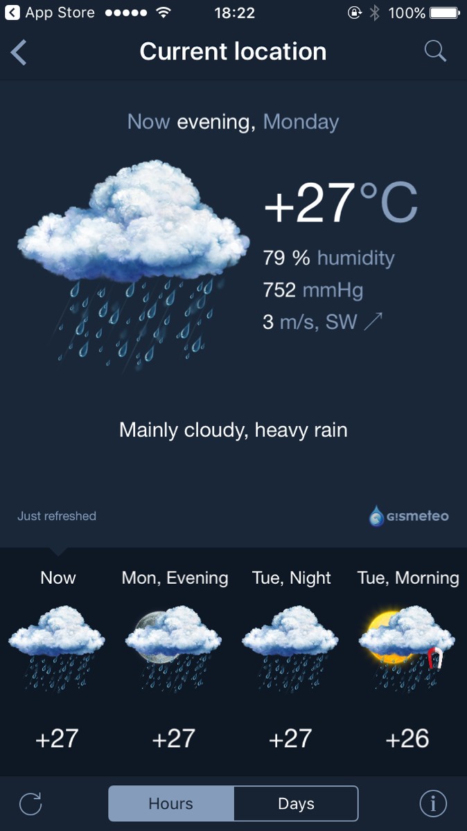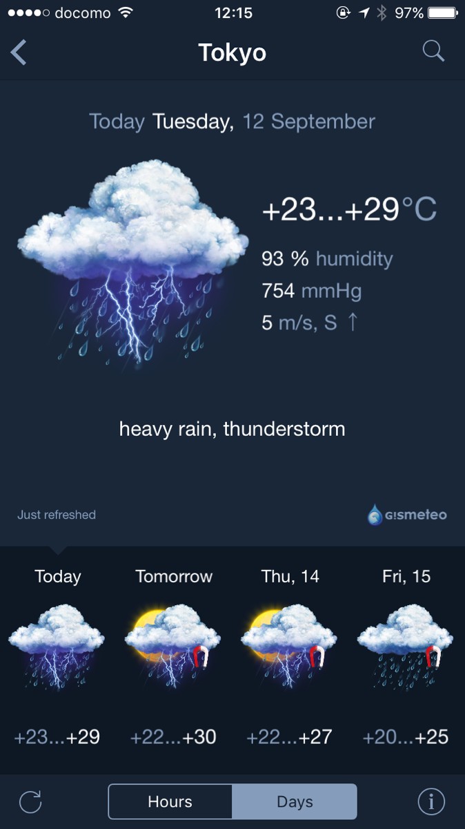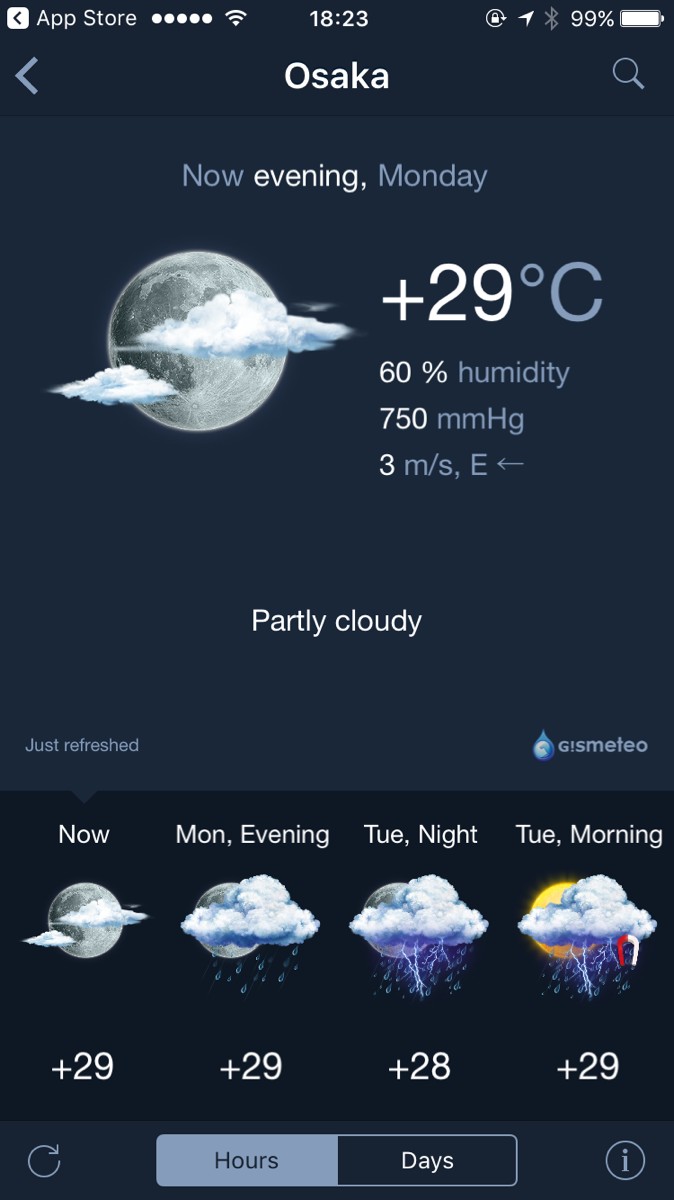 - 「Gismeteo lite」グラフィック画の天気マークで天気がチェックできます