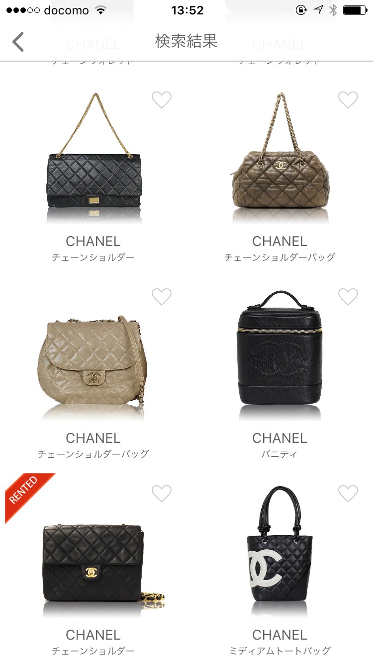 シャネルのかわいいバッグがたくさん検索されました~!どれでもかわいい・・・!購入するときと違って、「今回はこれにしてみよっと♪」と気軽にレンタルできるのも楽しいですね。他の方がレンタル中のものは「RENTED」と表示されていますが、気に入るものがあれば次回レンタルのタイミングを逃さないように要チェックですね!