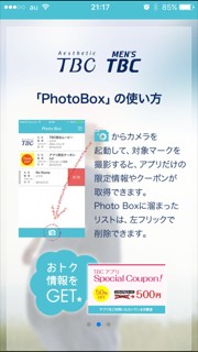 ③「Photo Box」のカメラ機能を使って、街中にあるTBCの広告を撮影するとクーポンになるものがあるそうです。見かけたら試してみてください。(広告によって対応していないものがあります。)