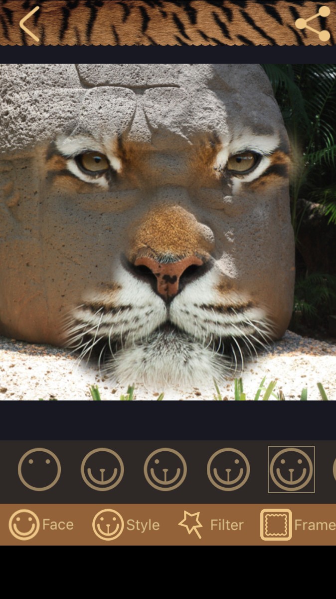 ・動物との合成加工だけでなく、フレームやフィルター、動物の面白いスタンプなどの基本的な加工をすることもできます。