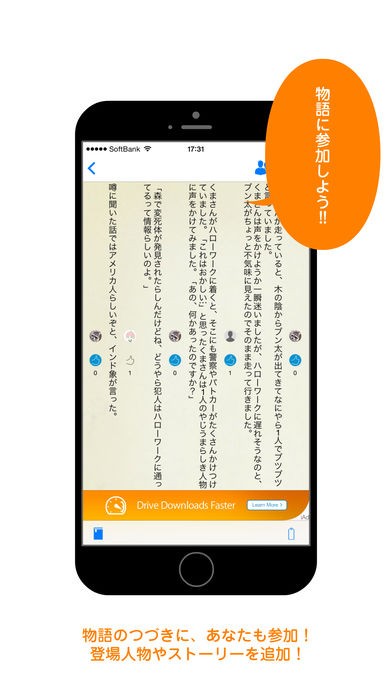 ・自分の書いた物語に、誰かが続きを書いてくれます。
