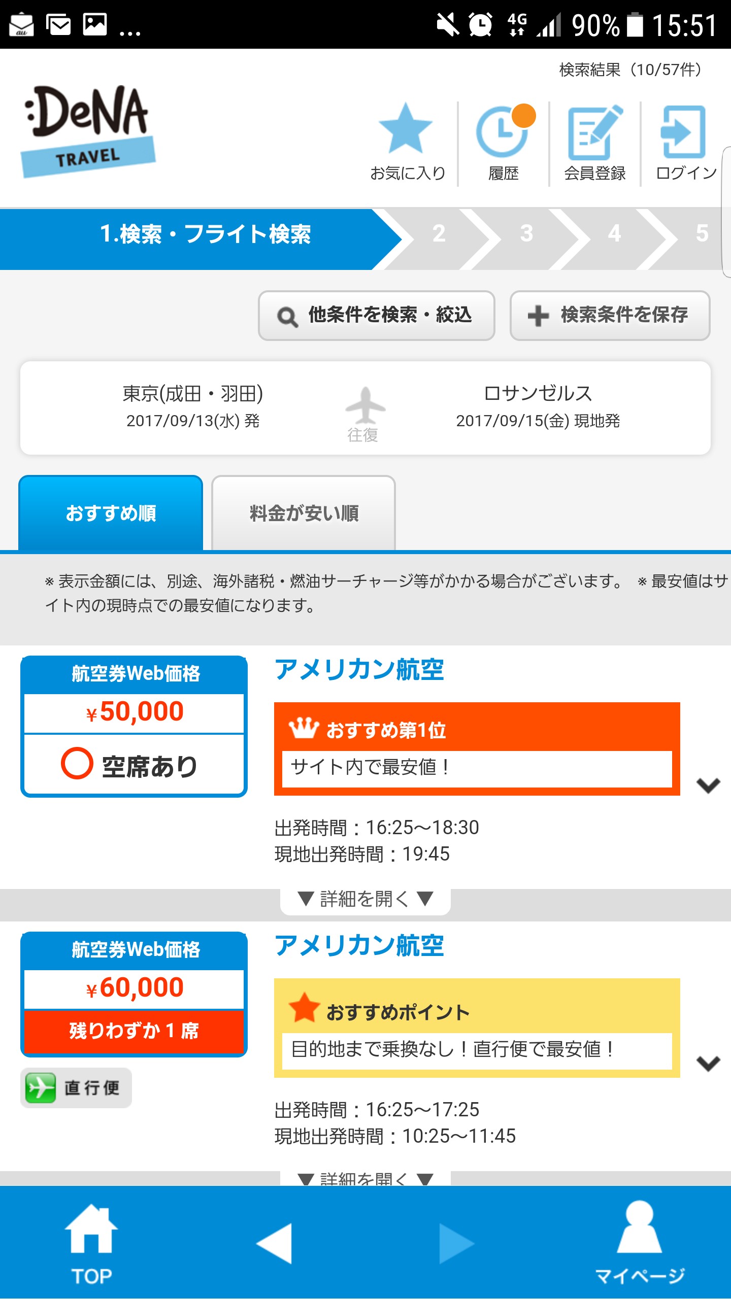 「海外、国内旅行のホテル、航空券、ツアー予約_DeNAトラベル」航空券を様々な用途から検索できる?!