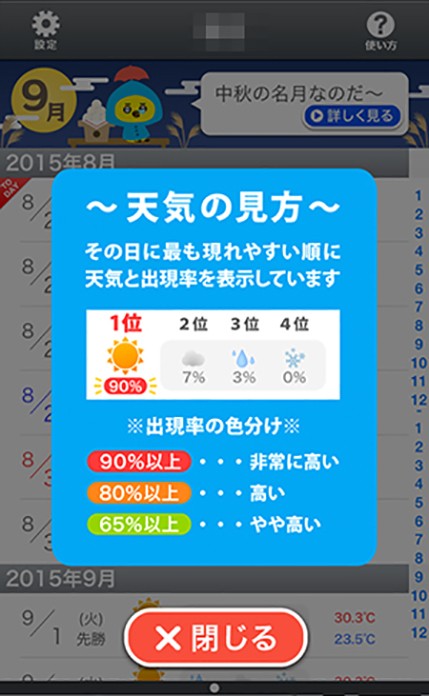 ※バージョン1.0.4の新機能として気象・住所・暦データを最新に更新いたしましたので、再度地点登録をお願いします。気温を近年の変動に合わせ変更しました。
