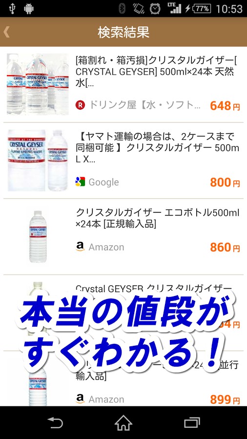 商品名で検索するだけで複数のサイトから最安値の商品を検索してくれる