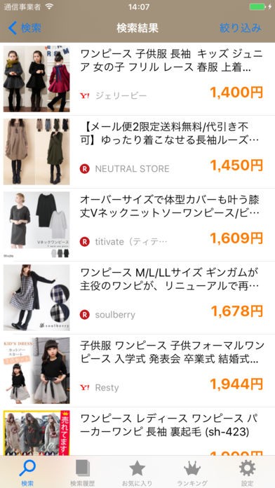 • 過去に検索した商品名は履歴に保存されるので再検索する時に便利
