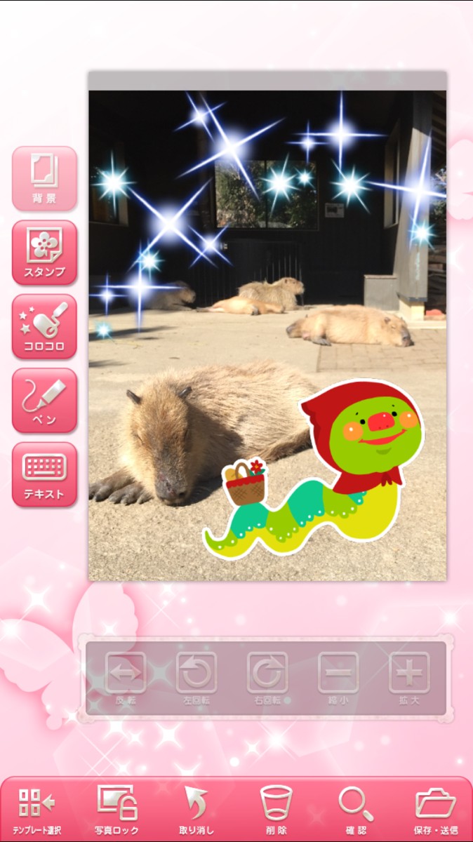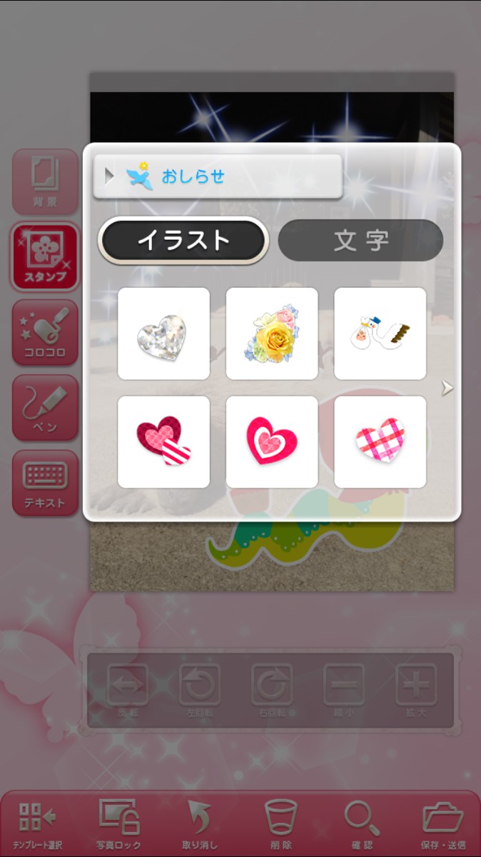 写真の加工は、フレームはもちろんイラストのスタンプやキラキラローラースタンプなど種類豊富にあります。プリクラで操作するように簡単に加工することができるので便利ですよ!