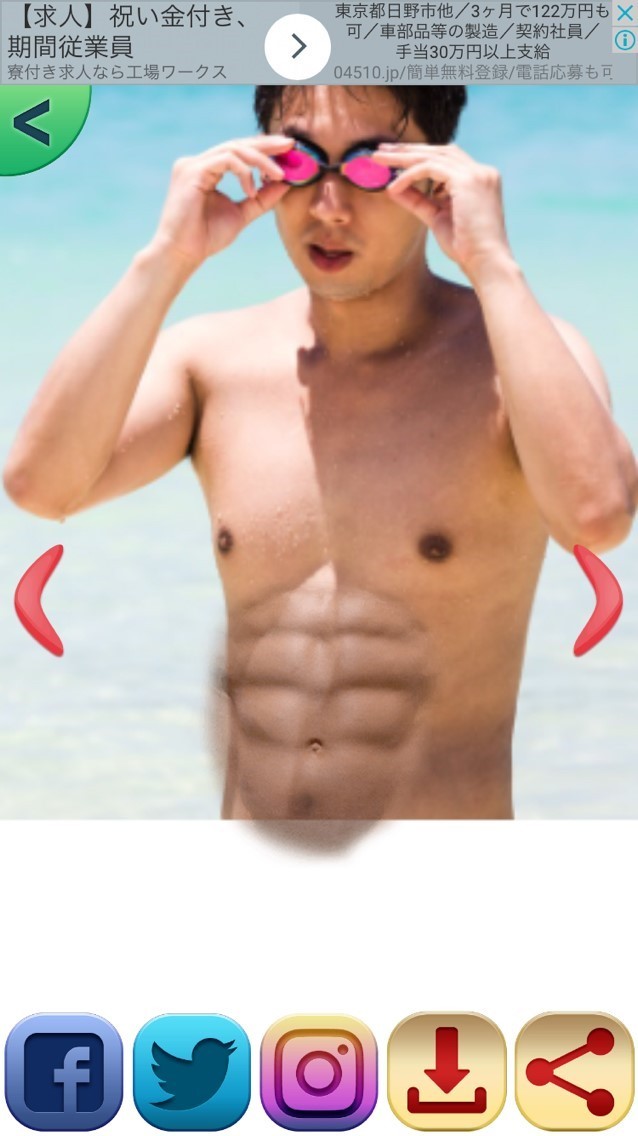 「腹筋フォトエディタ」は逞しく鍛え上げられた腹筋を写真に加工することができるアプリです。6パックボディに憧れている人はもちろん、簡単に操作できるので少しの空き時間や待ち時間に家族や友人と撮影して遊ぶのも楽しいですよ!