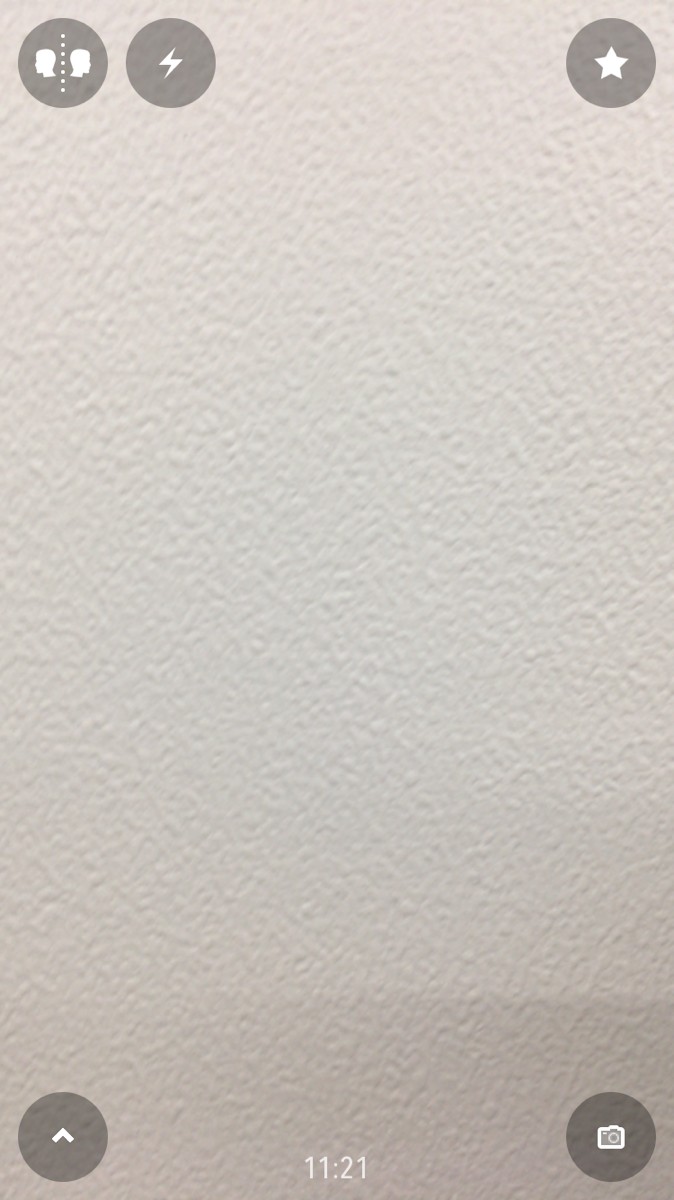 カメラの切り替えは左下のボタンをタップします。「フロントカメラ」「バックカメラ」「写真集」「他のアプリ」というメニューが表示されるので「バックカメラ」を選択すると、アウトカメラに切り替え可能です。インカメラの時と同様、左上のボタンをタップすれば左右反転した写真を撮影できますよ!