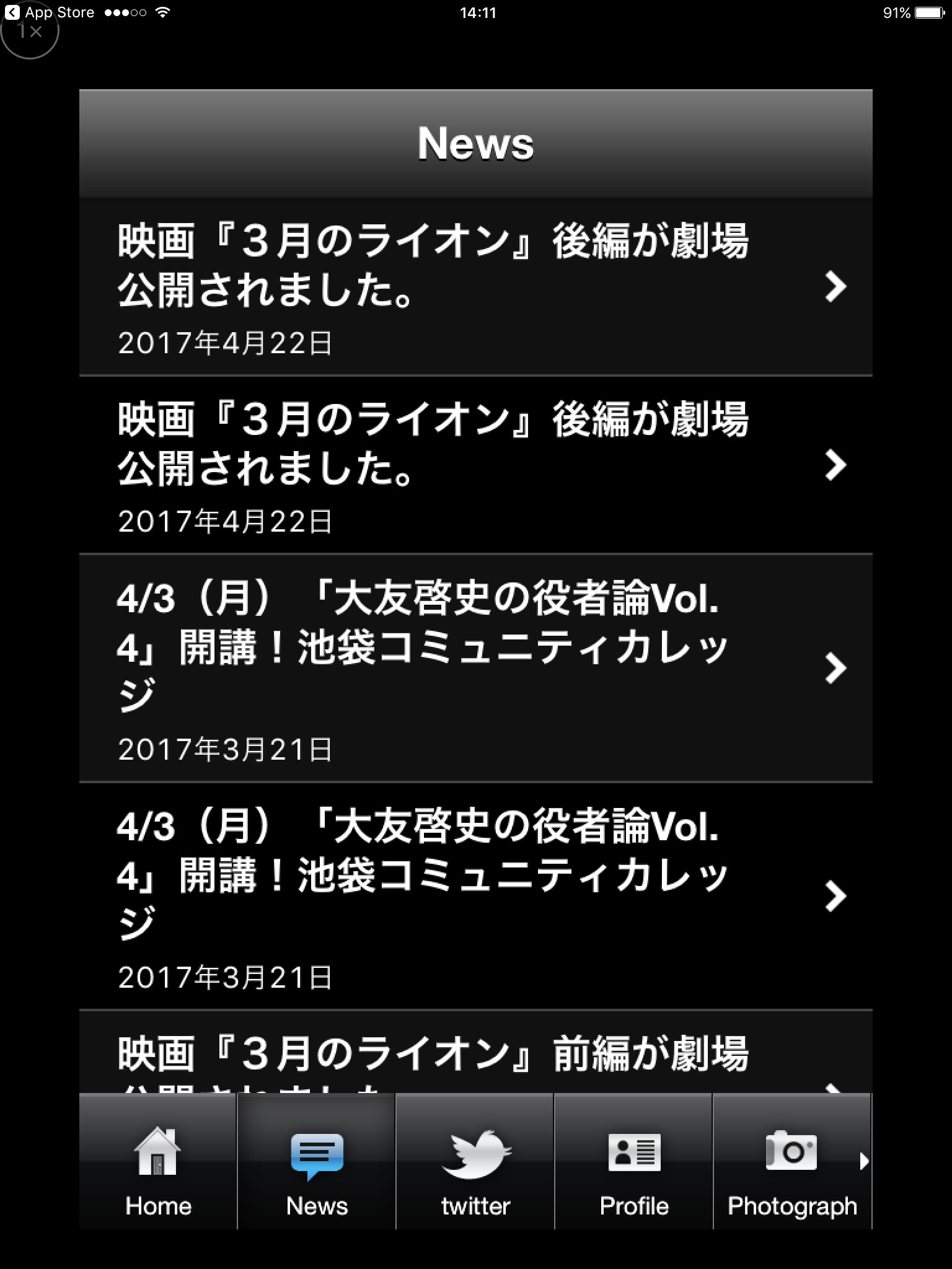 大友監督と交流が持てるアプリ「大友啓史」には、大友啓史の日常から、最新映画情報が満載です。アプリを起動すると、大友監督に関する豊富なメニューがあります。