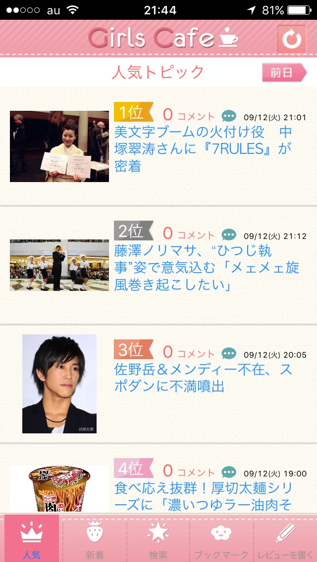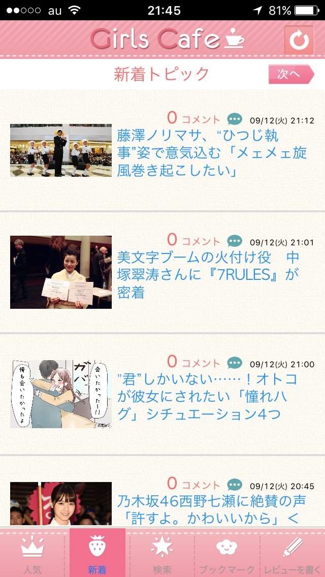 - 「ガールズカフェ」で最新ニュースをチェックしてみよう