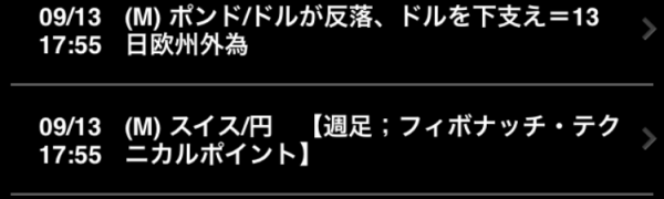 アプリのマーケットを開くと、「レート」、「ニュース」、「経済指標」3つのカテゴリに分かれています。FX取引をしたことのない人でも、ニュースや新聞で見かけたことがあるような国内企業物価指数、英中銀金融政策委員会・・などのタイトルと数字が並んでいます。経済の動向を知るために役に立つ情報をチェックすることができます。