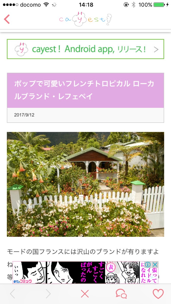 「ca y est!」は、女性が気になる情報をまとめてチェックできる女性のためのニュースアプリです。