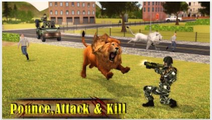 「Rage Of Lion」アプリは、ライオンを操作することで逃げ惑う人々や自衛隊など武器を持って向かってくる人々を追いかけるというスリル満点のシュミレーションゲームアプリです。