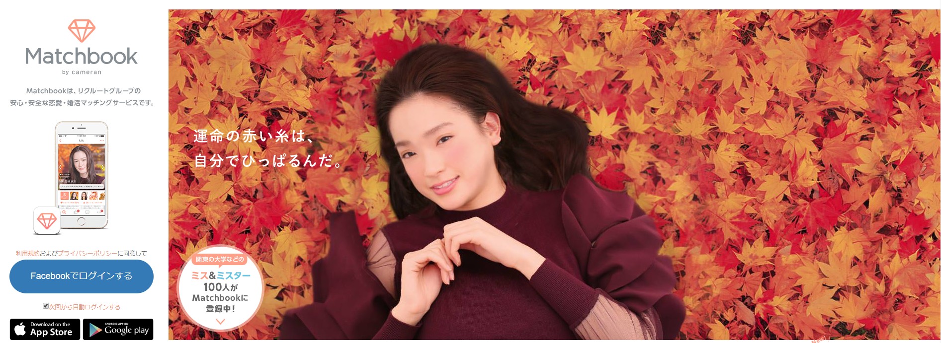 「マッチブック」は、リクルートグループ会社であるNIJIBOXが提供する出会い系アプリです。女性向けファッション誌を中心に紹介されていて、女性でも気軽に始めやすい雰囲気も人気の理由。オシャレな画像SNSアプリとの連携や、有名大学のミス・ミスターに会員登録してもらうなど、若い世代に嬉しいキャンペーンも魅力です。