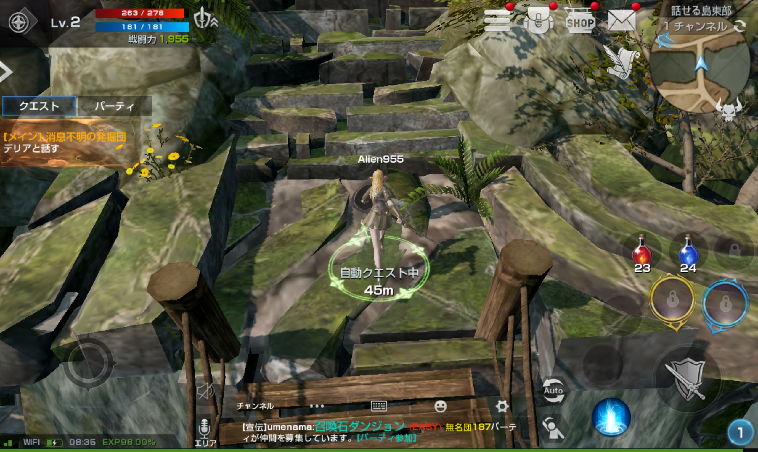 クエストをやるのが疲れたときに使えるオートモードも搭載。クエストリストに表示されているクエストをタップすれば自動で指定場所まで移動し、戦闘などを行ってくれます。