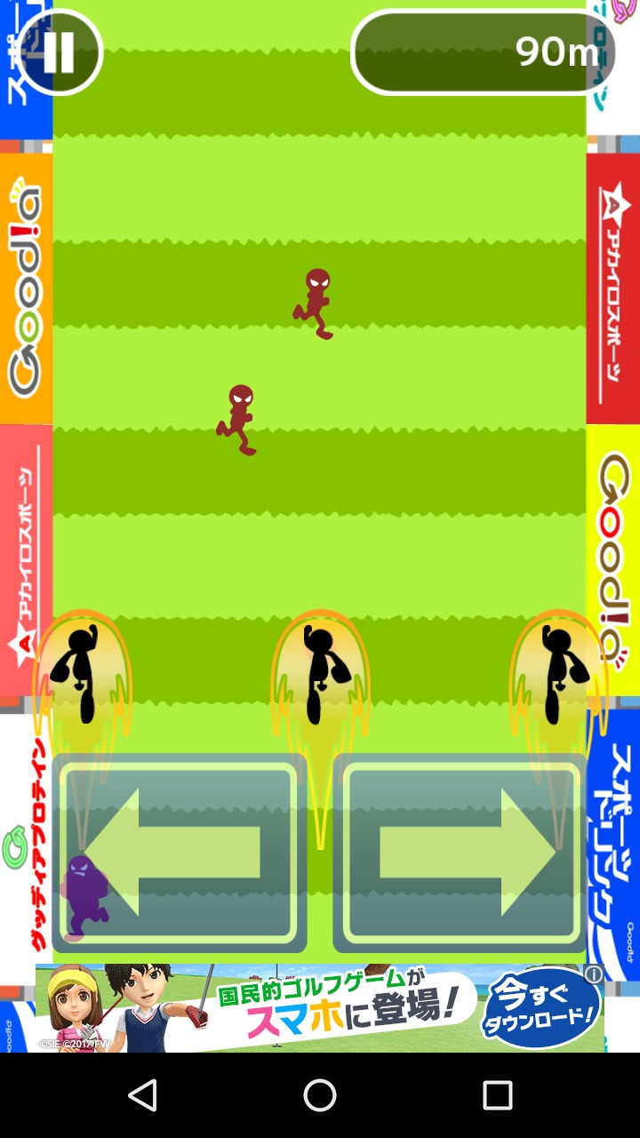 筆者がプレイした感覚では、真ん中の選手がボールを持っていると両サイドから敵が迫ってきてつかまりやすいように感じましたので、左右の両サイドのどちらかでボールを運ぶとやりやすいと思います。大体50mくらい進むと最初の「鬼」が出てきますので、うまくゲットすれば100mまで一気に進むことができます。そこまで進むことができたら自分のやり方を探してハイスコアを更新してみてください!