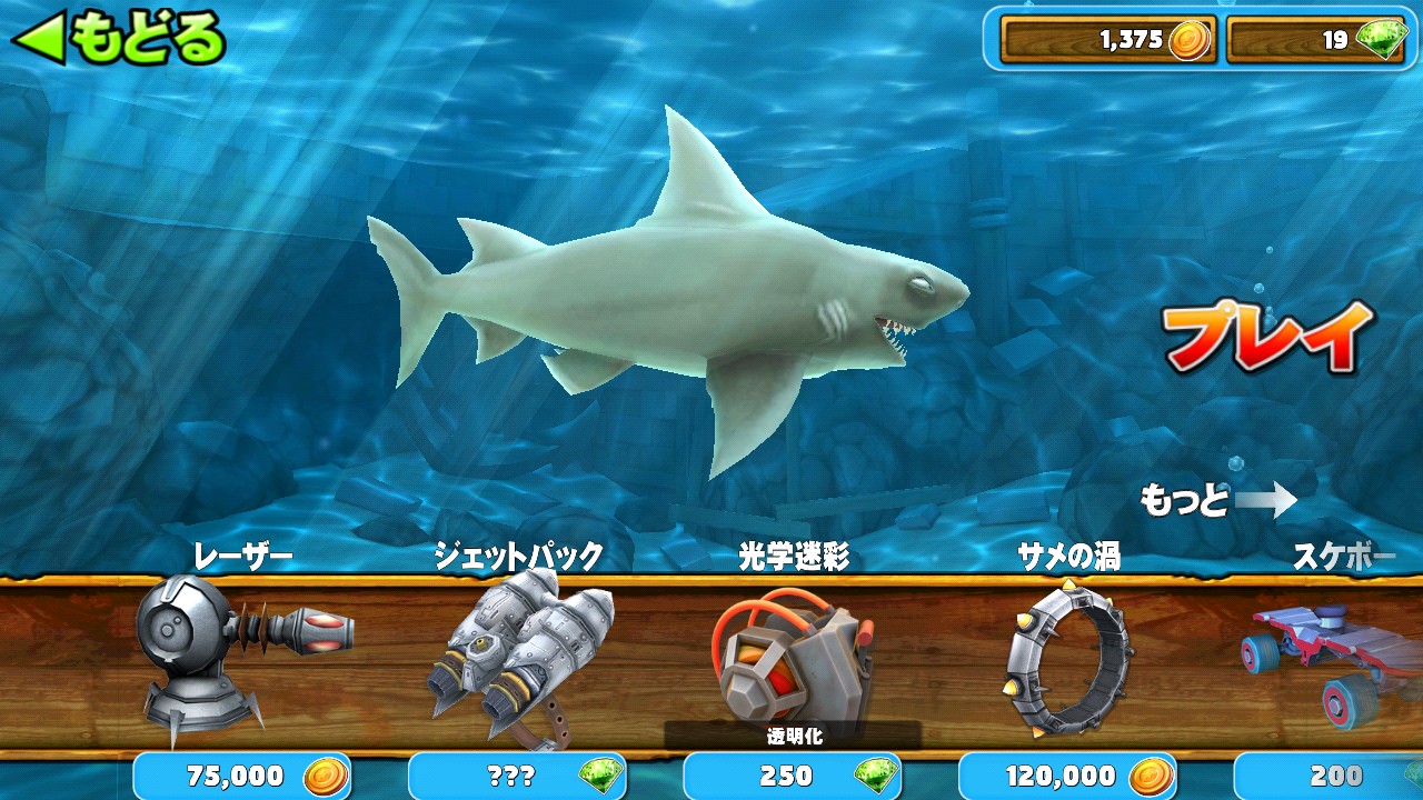 他にもコインやジェムという宝石でアイテムを購入し自分だけのサメにカスタマイズすることもできるので、どんどんやり込んで最強の捕食者を目指していきましょう。